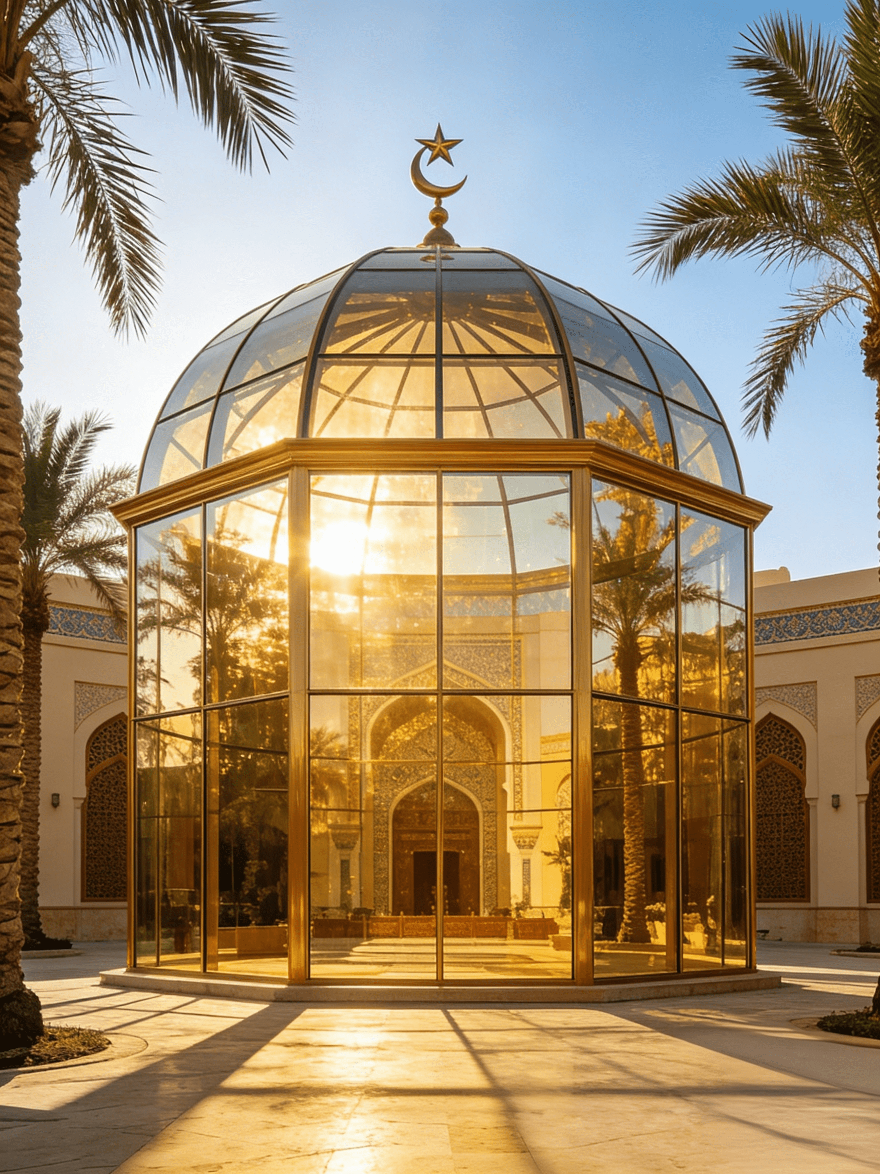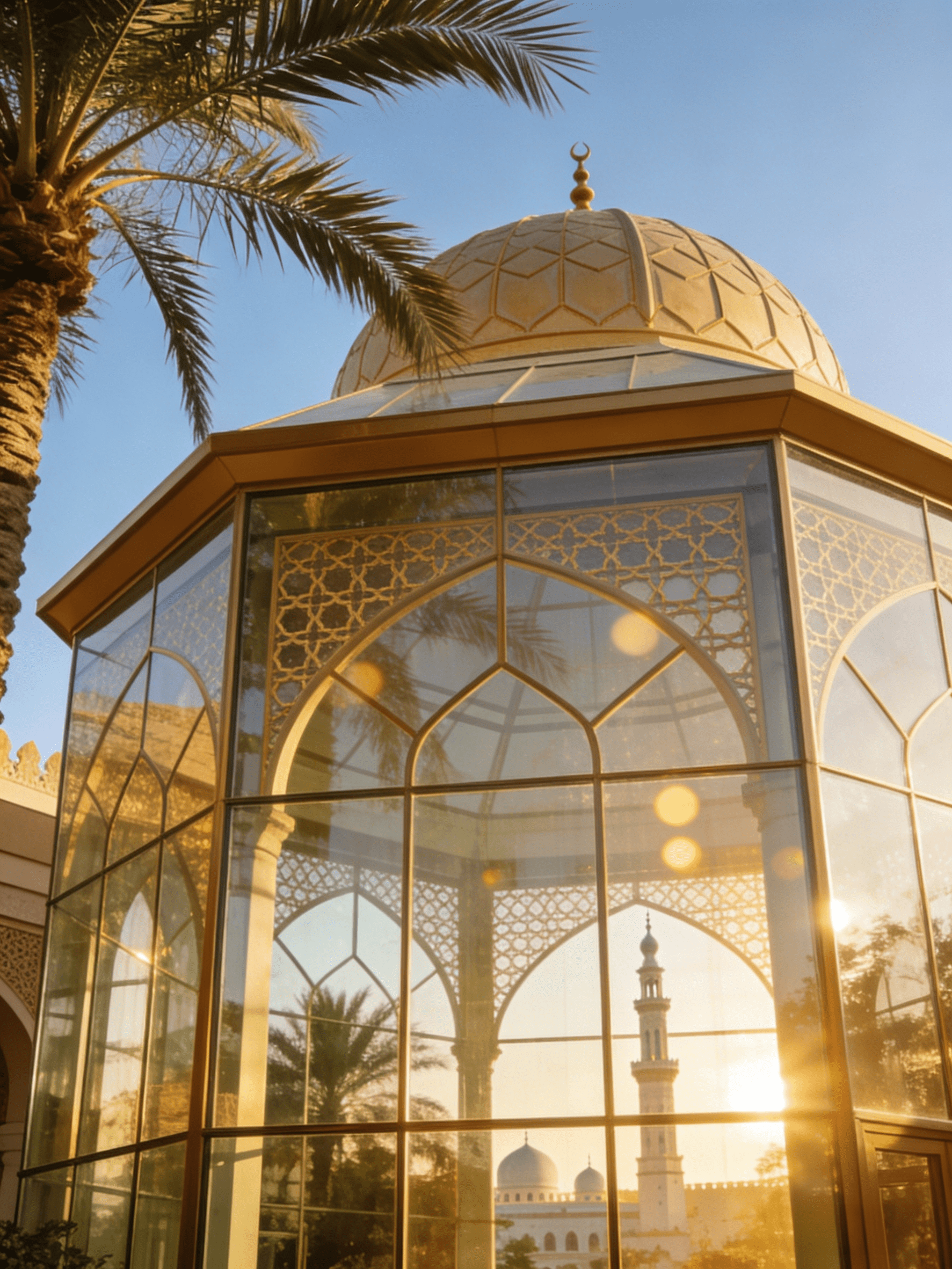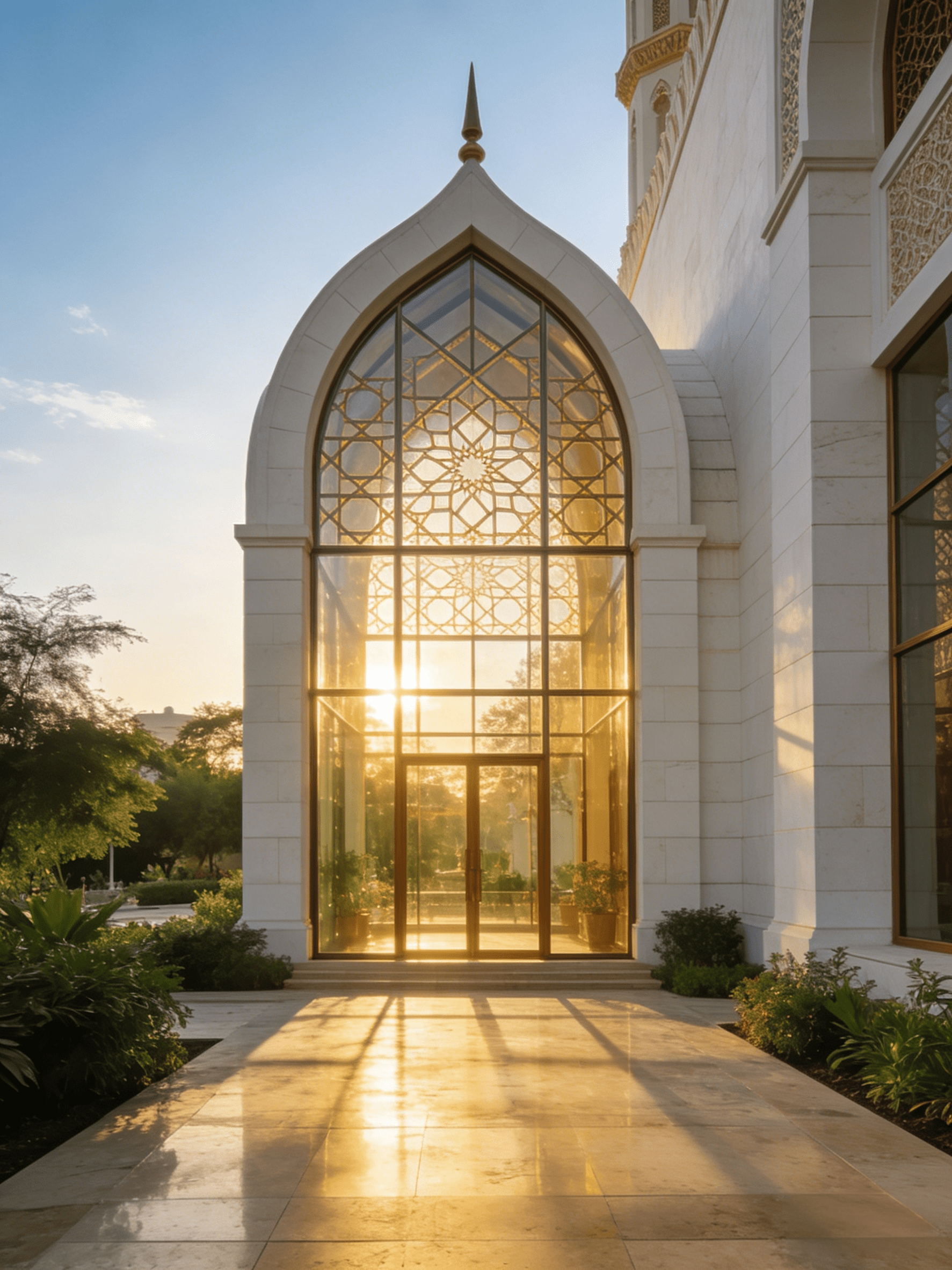 「精致雕花工艺」—— 定制伊斯兰式、欧式几何雕花玻璃,纹理细腻,层次丰富,光影透过雕花,在地面、墙面投射出细碎光斑,不用额外装饰,就自带高级感,适配高端别墅、庭院等多种场景,甚至可满足宗教空间的定制需求。