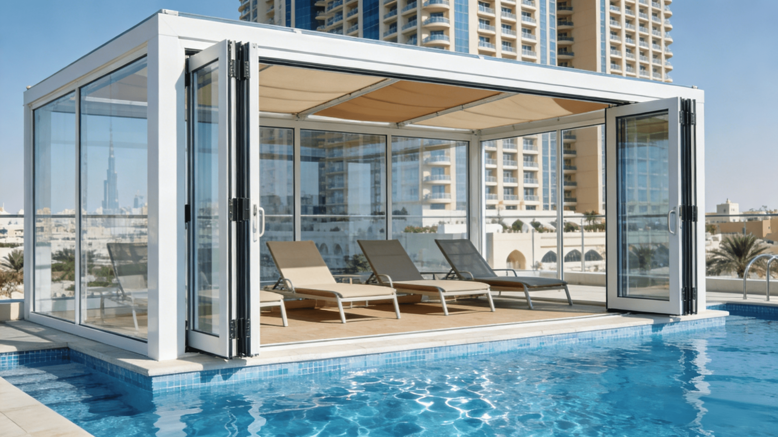 「泳池阳光房」—— 打造恒温泳池专属空间,无论刮风下雨、严寒酷暑,都能随时畅游,不用顾虑风沙、雨水,在阳光里享受游泳的快乐,把泳池变成家里的“私人度假地”。